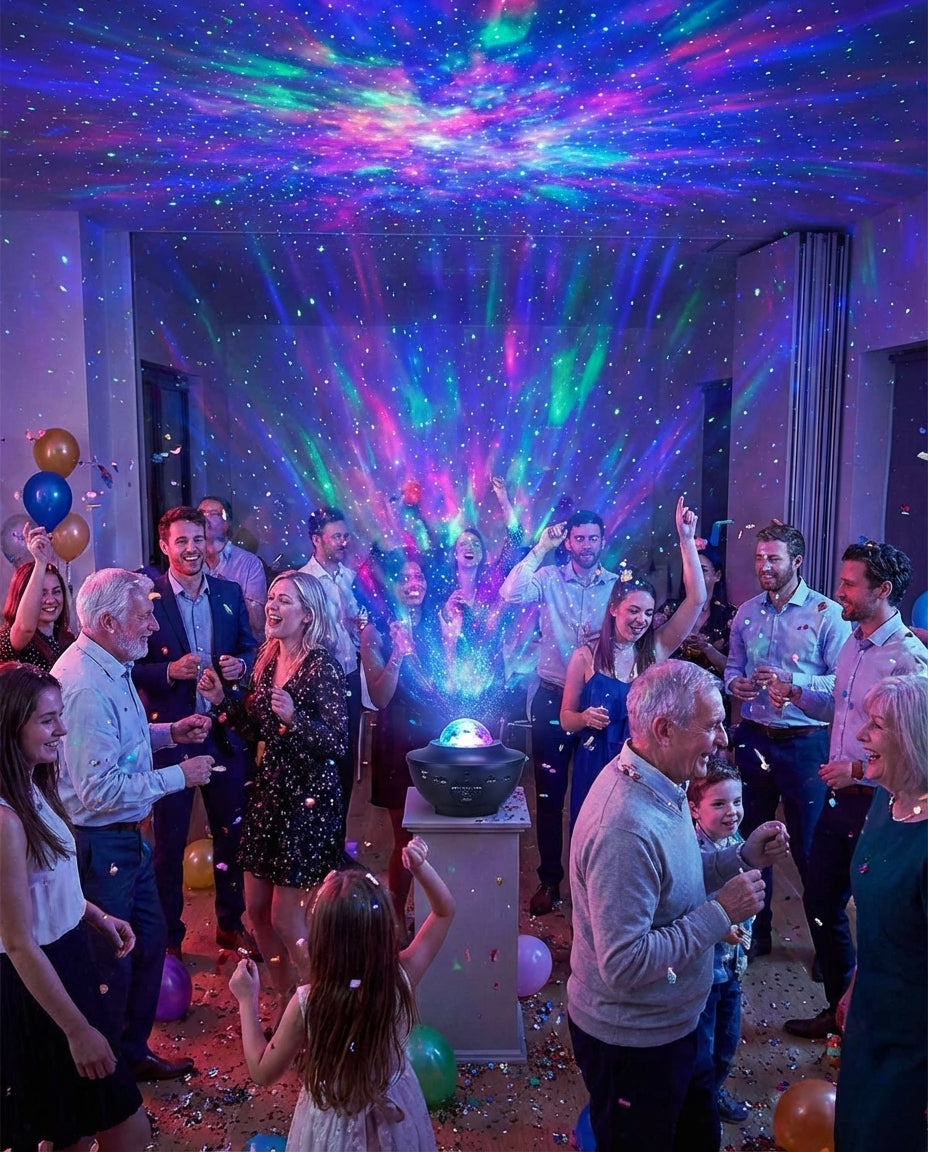 Crea un ambiente envolvente con luces estelares y sonido que transforman cualquier espacio en una experiencia única, perfecta para relajarte o compartir momentos especiales.