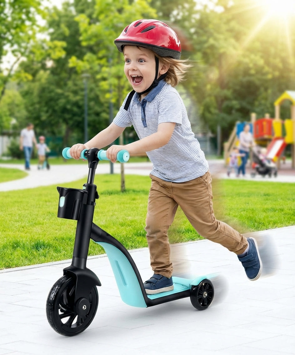 ¡Un solo vehículo, tres formas de diversión! El Patín Scooter 3 en 1 se transforma fácilmente en patín, bicicleta con pedales o bicicleta sin pedales, adaptándose al crecimiento y habilidades de tu hijo. Perfecto para aprender a equilibrarse, pedalear y jugar al aire libre de manera segura y entretenida.